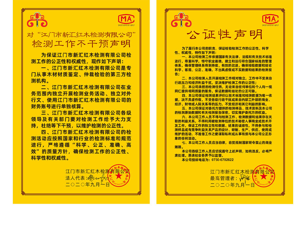 公司遵循專業(yè)、獨立、公正、科學(xué)的原則開展紅木木材檢測業(yè)務(wù),并聯(lián)合中國消費者委員會理事會開展的紅木材質(zhì)保障和紅木家具產(chǎn)權(quán)證工程、中國紅木委紅木與紅木制品檢測中心新會古典家具城辦事處、廣西福摩斯林業(yè)科技有限公司新會辦事處、新會古典家具城專家顧問團辦公室共同組成新會古典家具城紅木材質(zhì)鑒定中心。共同開展材質(zhì)鑒定、家具身份認證、產(chǎn)品監(jiān)制和質(zhì)量擔保、產(chǎn)品設(shè)計和創(chuàng)新等工作,為行業(yè)的誠信經(jīng)營、規(guī)范升級以及放心消費市場的打造提供科學(xué)保障。